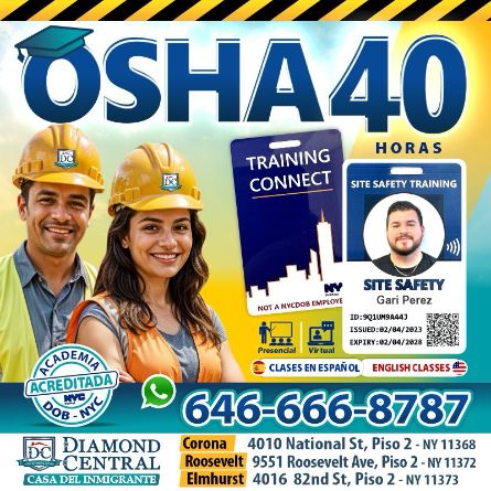 Lo que se considera OSHA 40 son las 30 horas de OSHA completadas y además un curso de llamado SST 10 horas junto con estos dos cursos realizados recibes una TARJETA de 40 horas, + Tarjeta OSHA 30 + Certificado- Todo sin pago inicial.